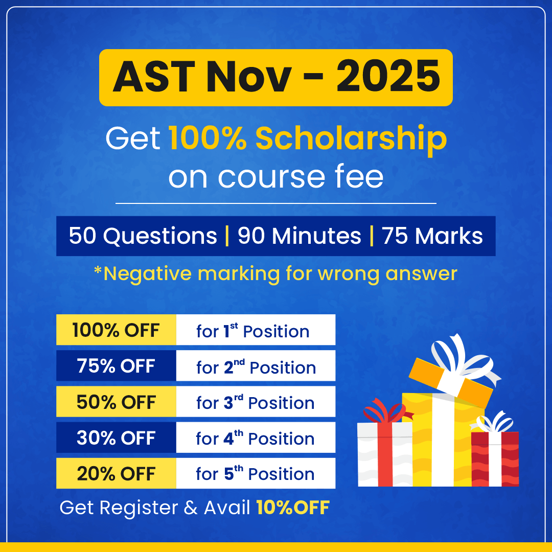 ACE Scholarship Test(AST) is a National Level Exam conducted Online to help students to get a Fee waiver on GATE, ESE Courses to get 100% scholarship on course Fee